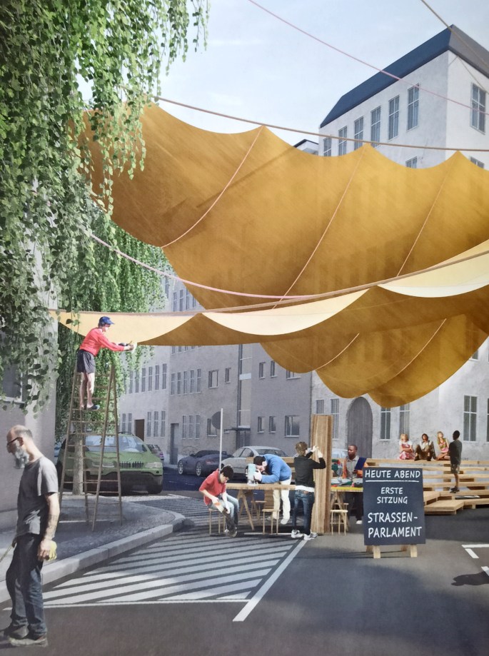 Frei werdende öffentliche Flächen können zur Begegnung, zur gemeinwohlorientierten Nutzung oder/und zur Klimaanpassung durch Versickerung, Beschattung, Biodiversitäts-